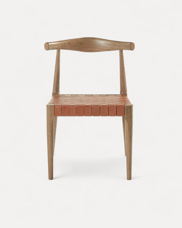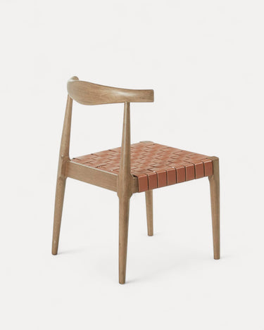 Cadeira Verano em madeira natural castanha e pele, 55×51,5×77 cm