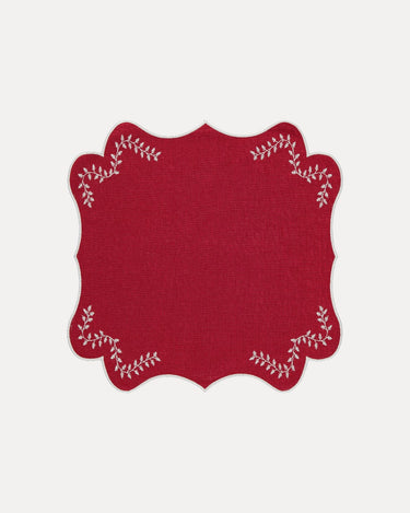 Individual redondo em mistura de linho e algodão, com acabamento recortado e bordado em padrão de folhagem. Ideal para composições de mesa que combinam textura e detalhe artesanal, mantendo um visual natural e elegante.
