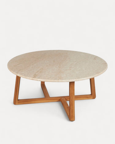Elori coffee table in marble and natural wood, Ø90x40 cm