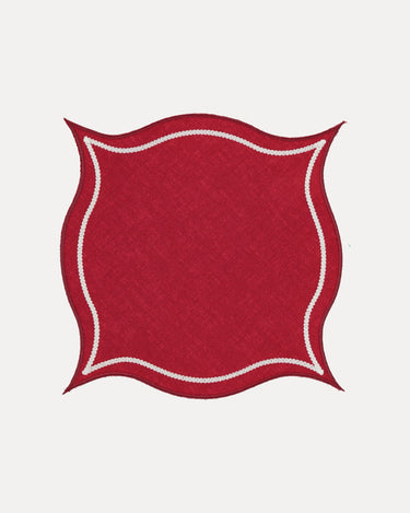 The Leme placemat features a wavy border and contrasting stitch finish.