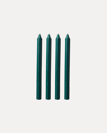 Decorative candles for candlesticks in dark green color. Standardized, conical base to facilitate fitting.