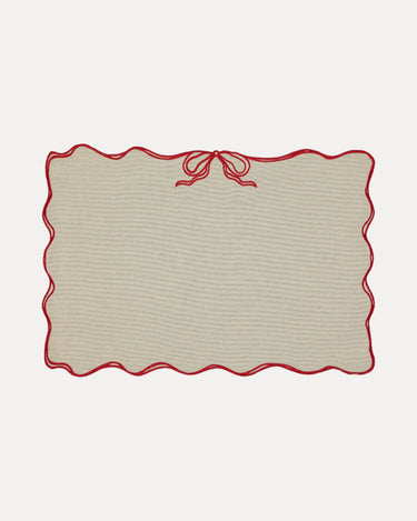 The individual Viena is distinguished by the wavy edge and the embroidered bow in the center, a detail that combines simplicity with a subtle decorative touch. Made from a linen and cotton blend, it offers a natural and durable texture, ideal for daily use or for more festive table settings.