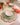 Placemat round raffia with wavy edge. Available in four colors: white, dark blue, green, and orange.