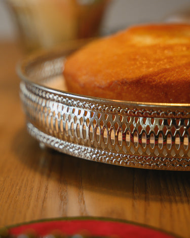 Silver-plated tray with multiple uses, from a drink holder to jewelry storage or centerpiece decoration.