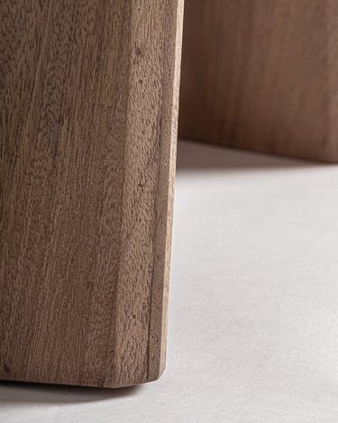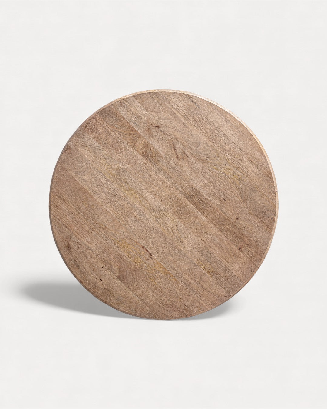 The Alvor table combines mango wood with a natural brown finish and a black iron metal frame. The thick top offers durability and visual presence, while the angular legs provide stability and a robust contemporary aesthetic. Ideal for modern spaces that value natural materials and strong lines.