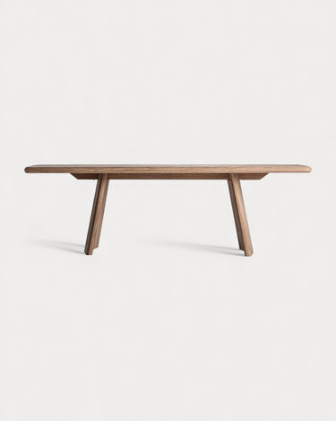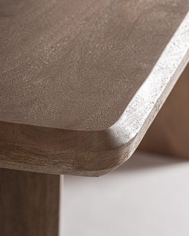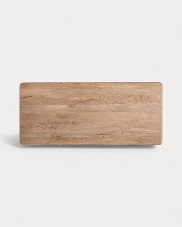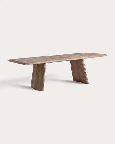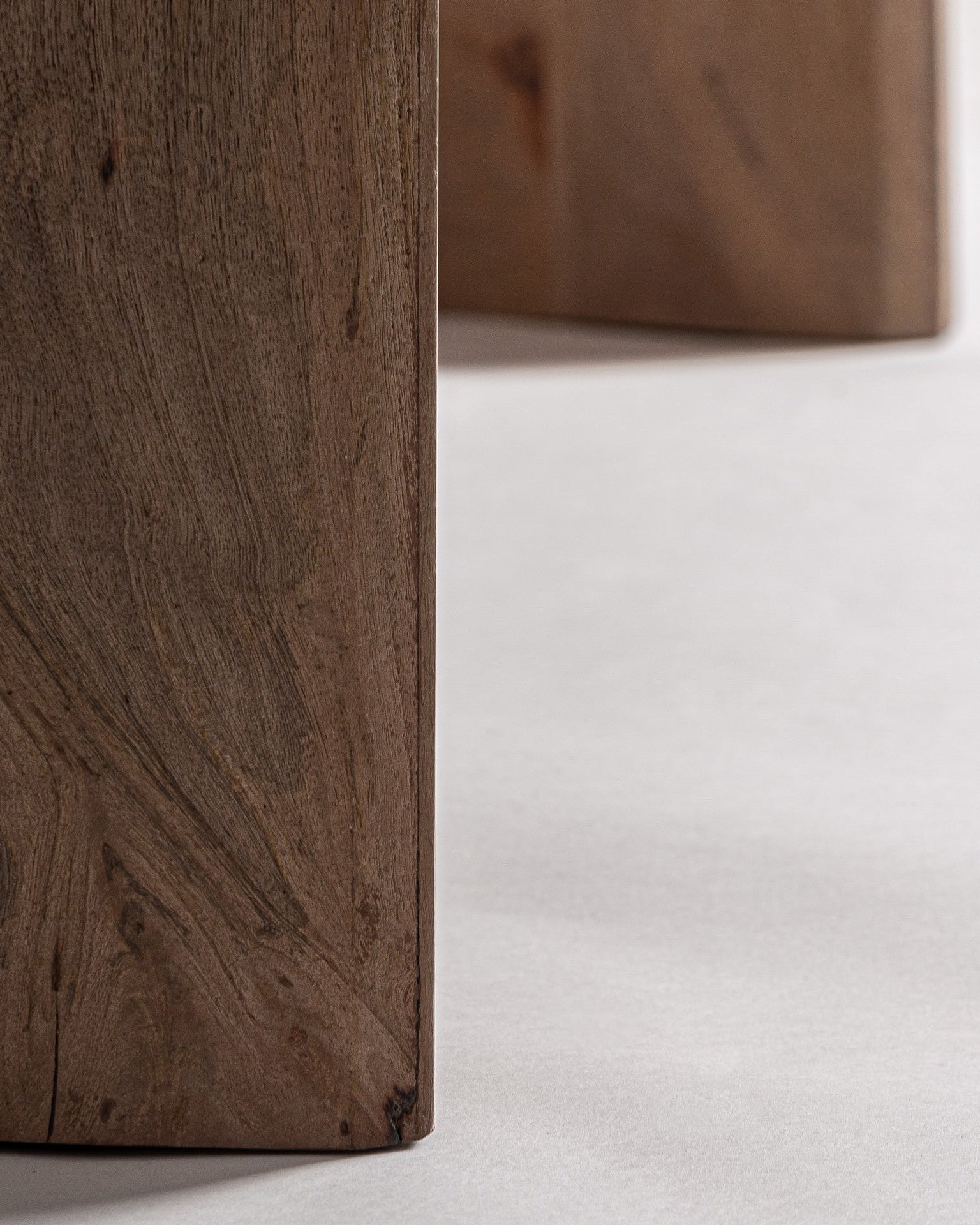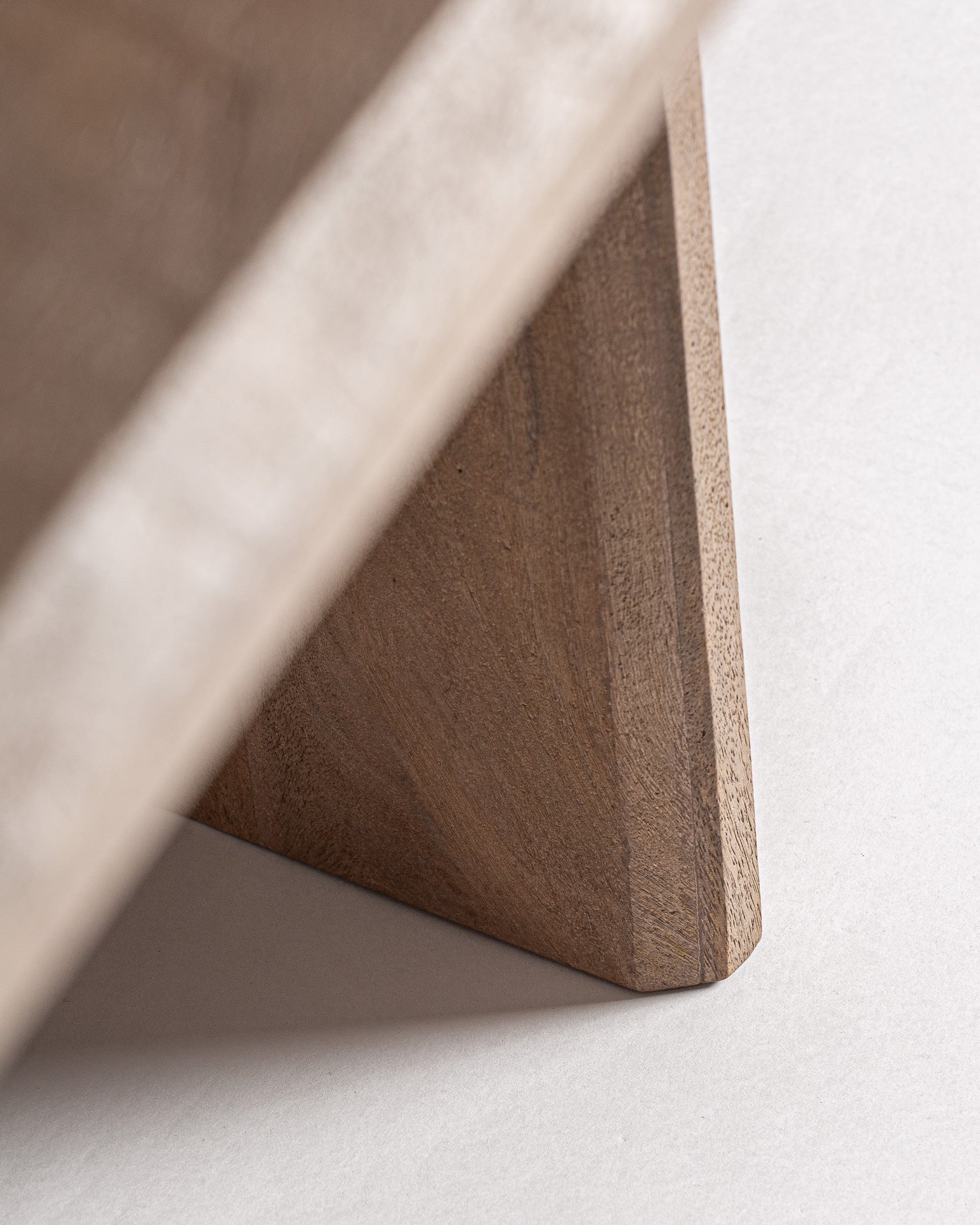 Made from brown mango wood, the Moure table features a functional and contemporary expression. The large rectangular top offers excellent usability, while the base with angled legs adds structural lightness. A versatile and durable piece for spacious dining rooms.