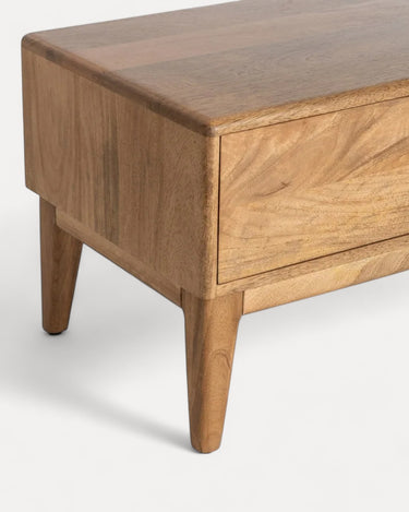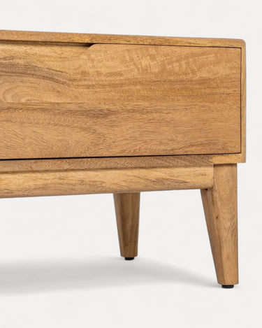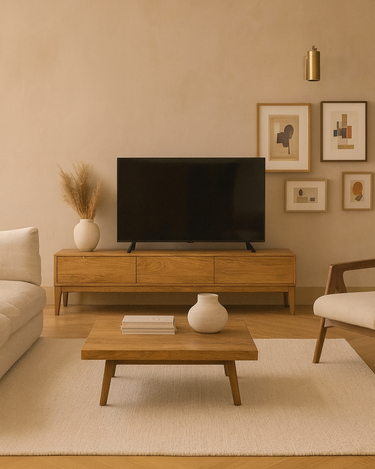 With simple lines and natural materials, the Marvi TV stand is a versatile piece that combines functionality and elegance. Made of mango wood, it stands out for its warm tone and smooth texture that adds visual comfort to the room.