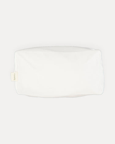 Neceser de lino blanco, resistente y elegante, con detalle personalizable. Ideal para viajes y uso diario.