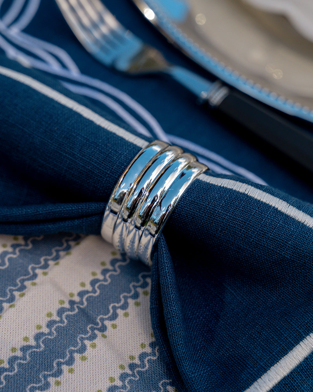 Servilletero con Rayas Plateadas