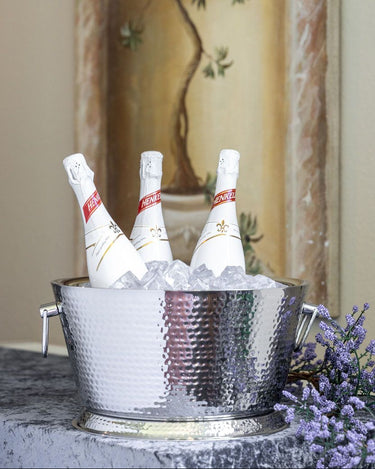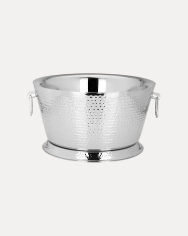 Elegante, amplia y con un acabado martillado de alta calidad, esta champañera será el centro de tus celebraciones. Con asas laterales robustas y acabado en acero inoxidable, mantiene las botellas de champán, vino o agua fresca durante toda la comida. Una pieza de lujo para cenas, fiestas y ocasiones especiales.