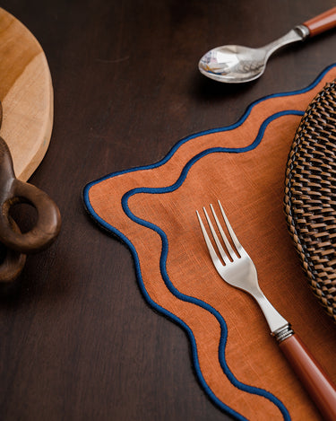Com bordados ondulados contrastantes, estas peças destacam-se pelo design alegre e sofisticado, perfeitas para dar personalidade à mesa. Disponíveis em várias combinações de cores, permitem misturar e combinar para criar diferentes ambientes, desde ocasiões descontraídas até jantares mais formais.