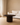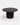 Table en bois de manguier brun foncé, avec un pied unique et des lignes ondulées.