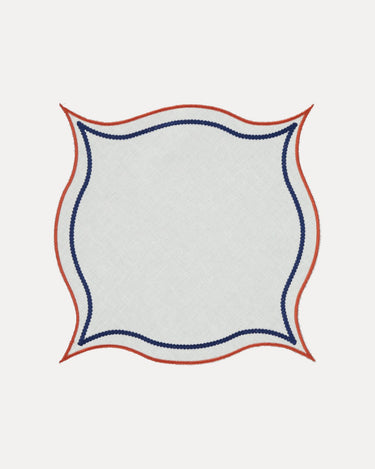 Le set individuel Leme est composé d'un bord ondulé et d'une finition en point contrastant.