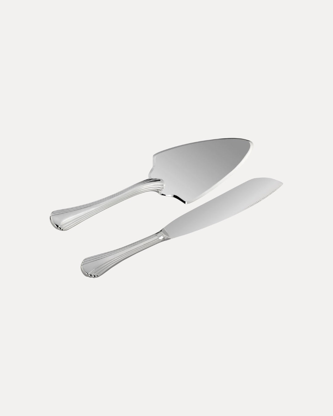 Ensemble composé d'un couteau et d'une spatule argentés, au design élégant et à la finition miroir. Parfait pour servir gâteaux et tartes, ajoutant de la sophistication à chaque occasion spéciale.