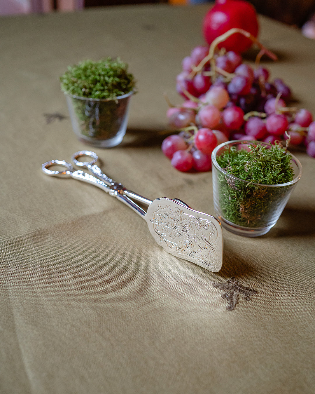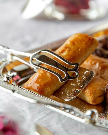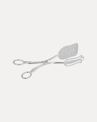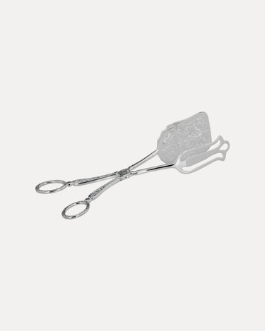 Pince de service ornée avec une finition argentée. Sa forme classique et ses détails délicats en font le choix parfait pour servir gâteaux, pâtisseries ou petits desserts avec élégance.
