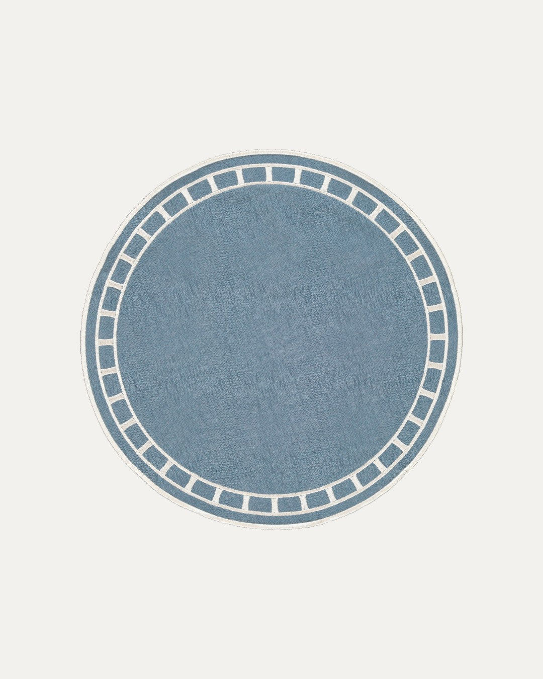 Set de Table confectionné en lin et coton avec une broderie décorative sur le bord à effet mosaïque.