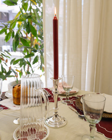Bougies décoratives pour chandeliers en couleur rouge. Base normalisée, conique, pour faciliter l'emboîtement.