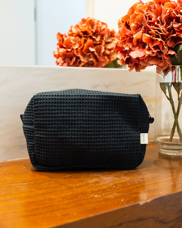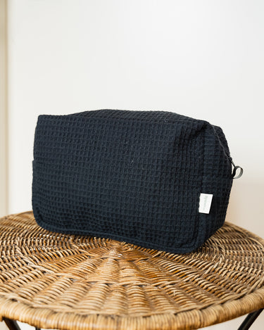 Necessaire favo nero, prodotto in 100% cotone di alta qualità, con un interno facile da pulire.