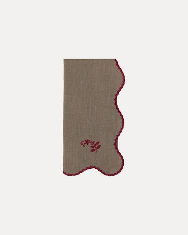 Questo tovagliolo si distingue per il bordo ritagliato e ricamato a contrasto, mantenendo l'armonia con i tovaglioli della stessa collezione. Realizzato in misto lino e cotone, offre una sensazione naturale e morbida, con una finitura resistente e di facile manutenzione.
