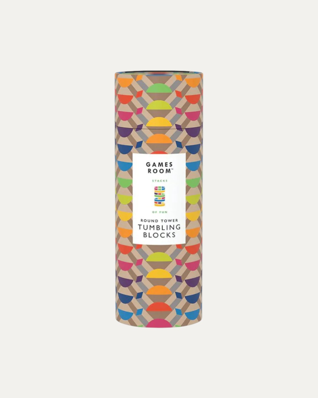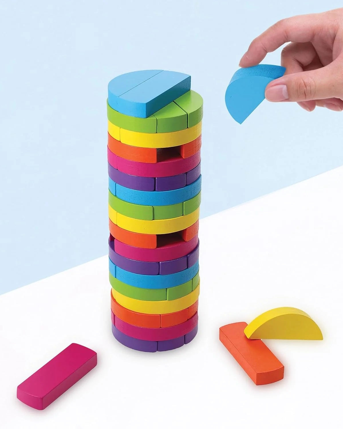 Un aggiornamento con un bel disegno per questo gioco classico, questa scatola colorata contiene 54 blocchi di legno in due forme diverse (rettangolare e semicerchio) che formano una torre circolare. È altrettanto bello esposto su uno scaffale quanto sulla tua scrivania!