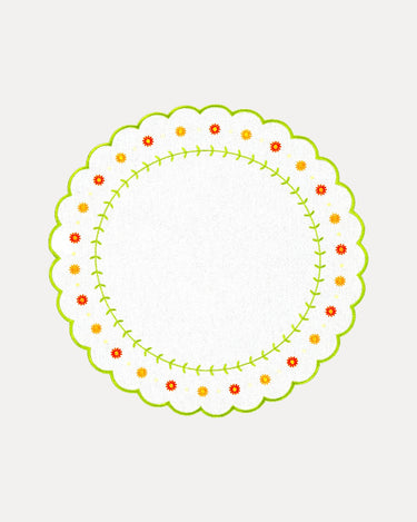 Questi eleganti e delicati tovagliette, con fiori ricamati, sono stati ispirati per i pranzi e le cene di primavera/estate. Solo la tovaglietta rende già speciale la tavola, sono questi dettagli che fanno la differenza. Abbinalo al tovagliolo margherite.