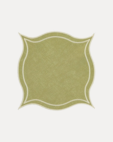 Il tovaglietta Leme è composto da un bordo ondulato e finitura con punto a contrasto.