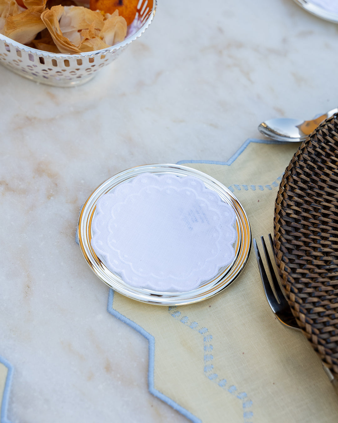 A Base de Pão Prateada, com 11 cm de diâmetro, é uma peça elegante que adiciona um toque de sofisticação à sua mesa de Natal. Ideal para servir pães ou outros acompanhamentos, esta base prateada de alta qualidade é perfeita para criar uma atmosfera acolhedora e requintada durante as suas celebrações festivas. O seu design simples e refinado combina perfeitamente com a decoração natalícia, tornando-se uma escolha encantadora para as suas receções e jantares especiais.