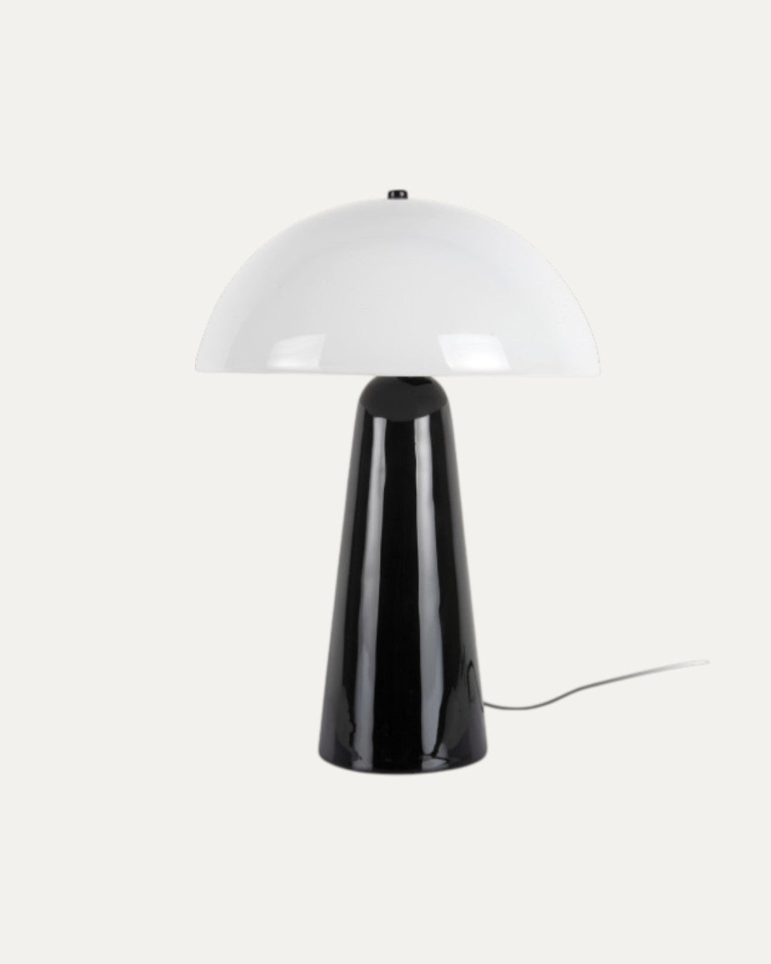 - Cores: Preto (base) e Branco (abajur)