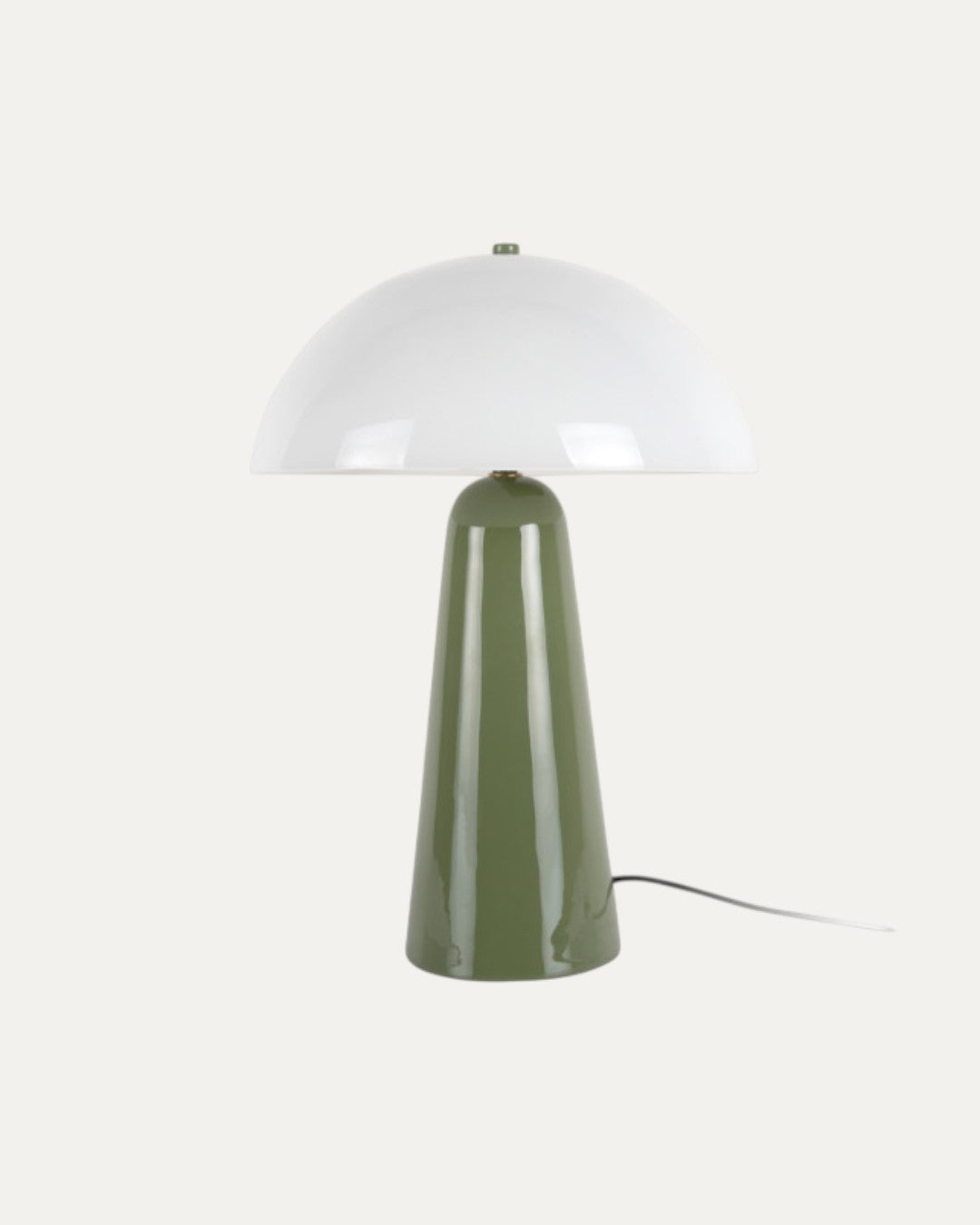 O Candeeiro Elise equilibra a robustez do metal com a suavidade do vidro opalino. O contraste entre a base em ferro de tom verde e o abajur branco leitoso resulta numa peça de linhas limpas, ideal para ambientes que seguem uma estética escandinava ou minimalista.