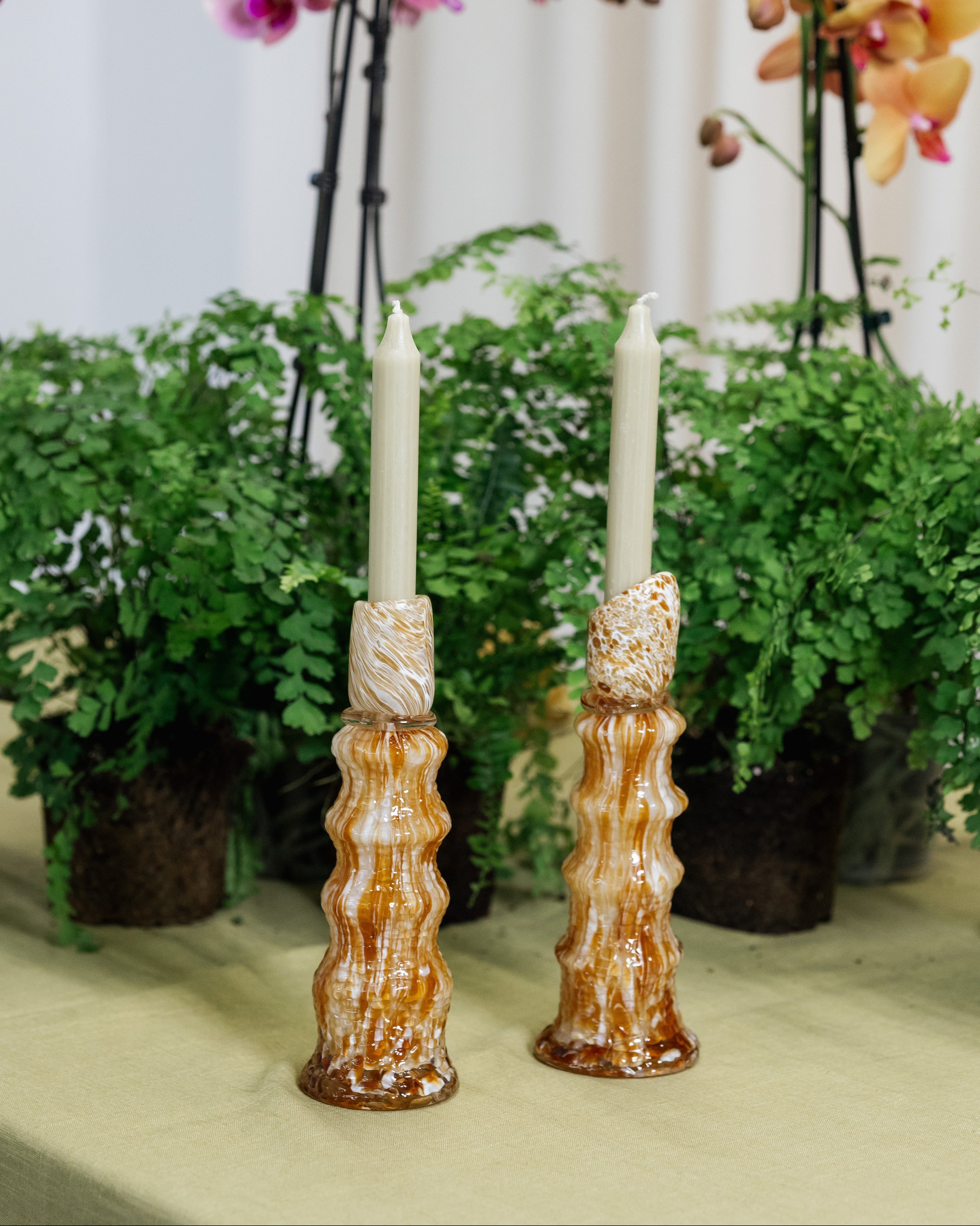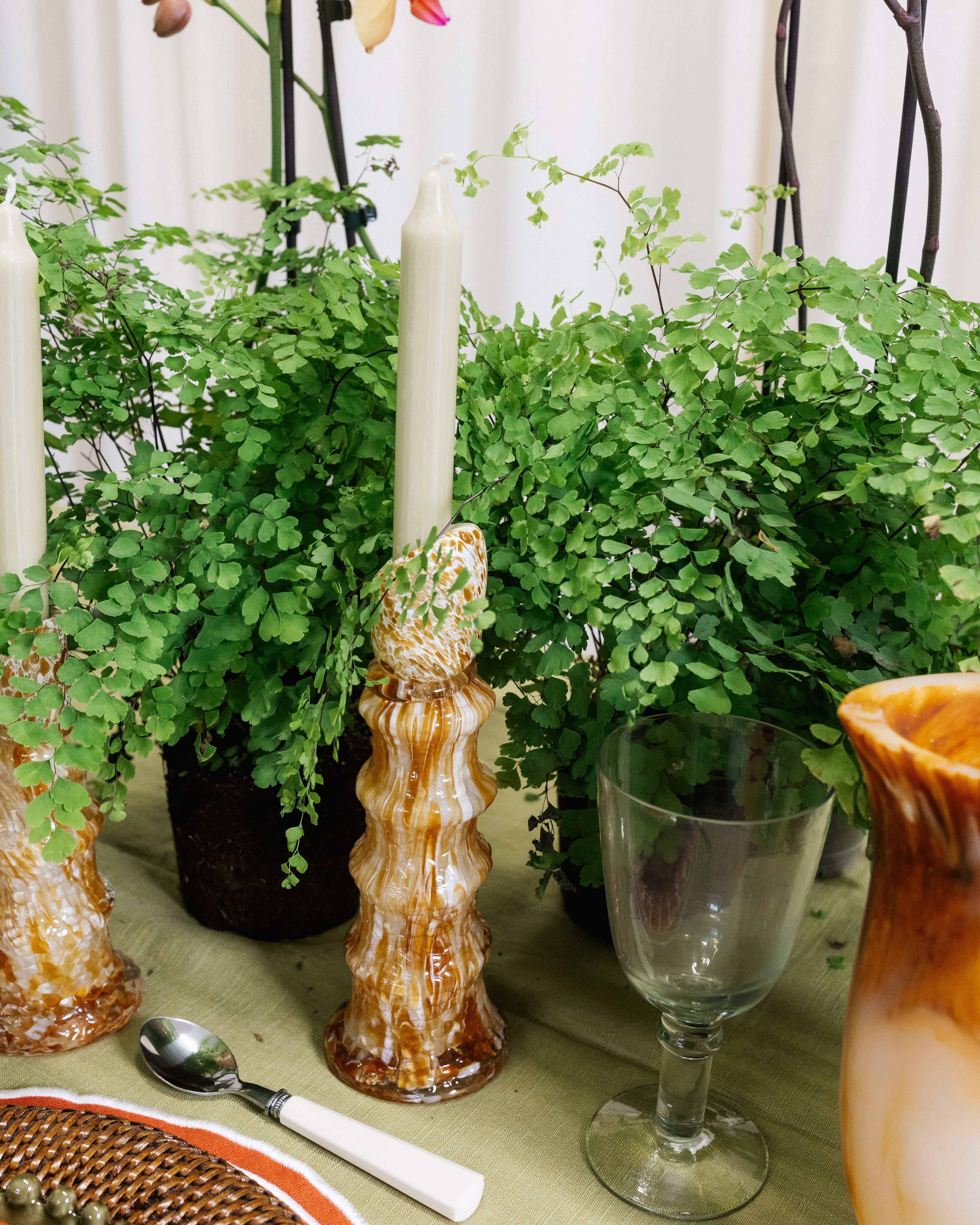 Castiçal vibrante que dá vida a qualquer superfície. Combine-o com um modelo maior a condizer para um toque mais divertido. O castiçal é feito à mão, o que significa que cada peça é única e podem ocorrer variações.