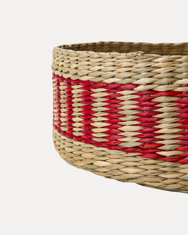 O Cesto Alentejo combina a textura natural do vime com o toque artesanal das faixas vermelhas tecidas à mão.