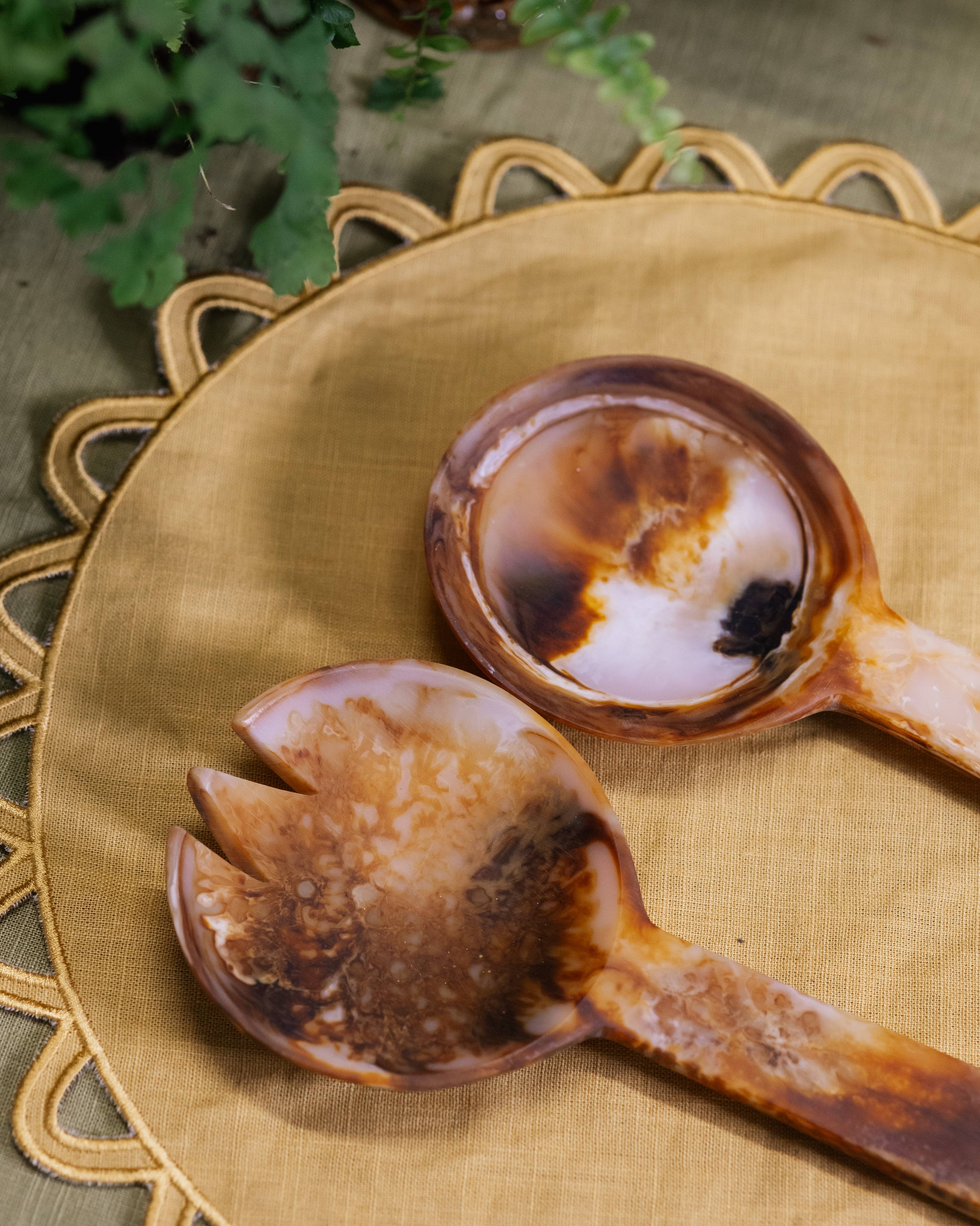 Conjunto Talheres Salada em Resina Marmoreada em tons mel