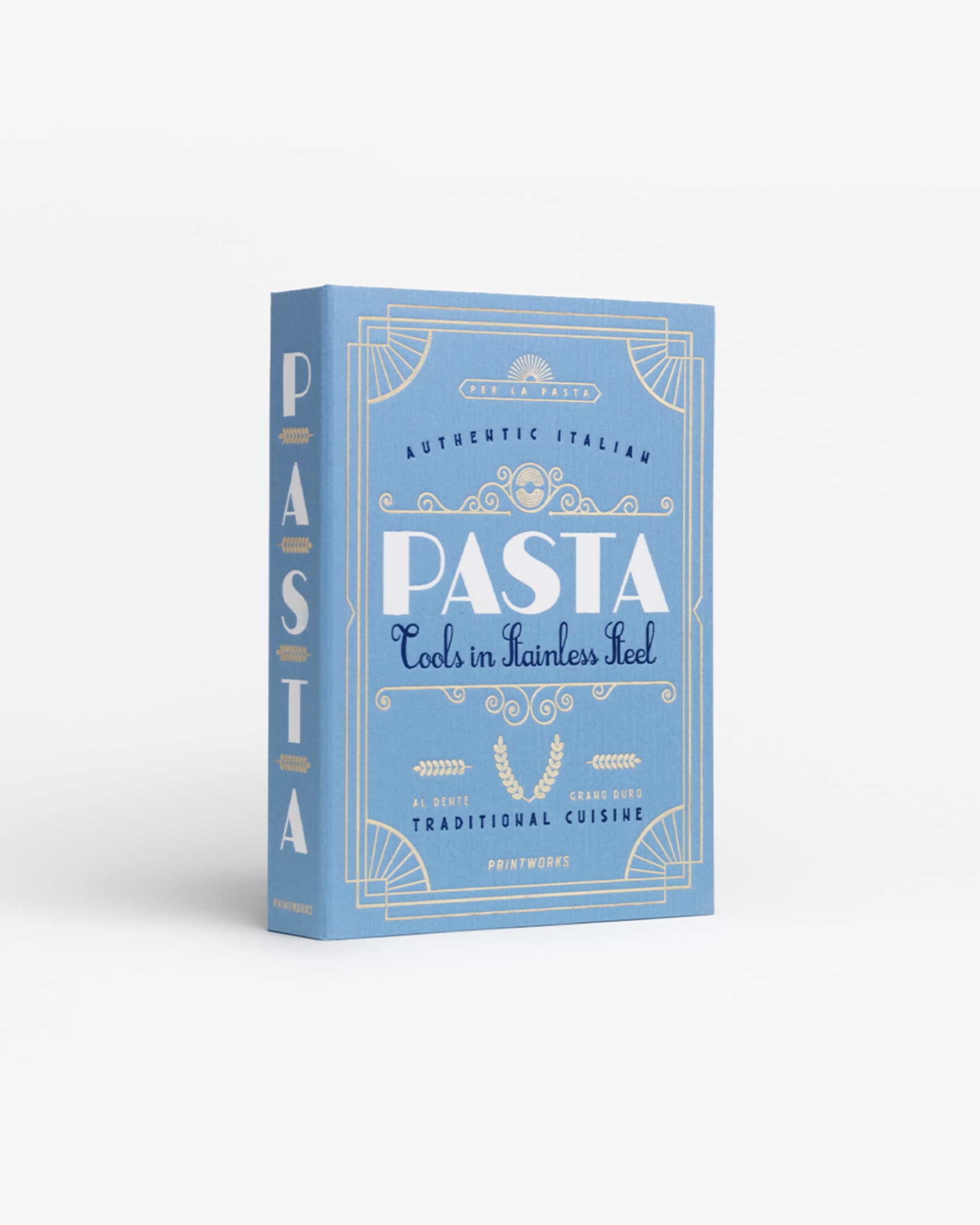 Descubra o nosso Kit Essencial para Noites de Massa, habilmente disfarçado como uma elegante caixa em forma de livro. Ao abri-lo, irá descobrir todas as ferramentas essenciais para organizar jantares de massa de sucesso.