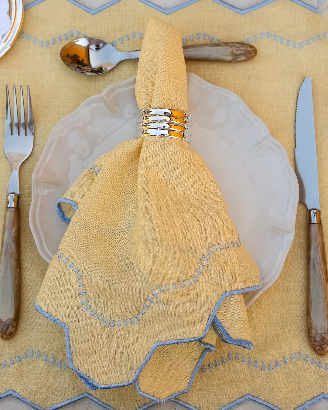 Guardanapo Alba, Amarelo Pastel com Azul