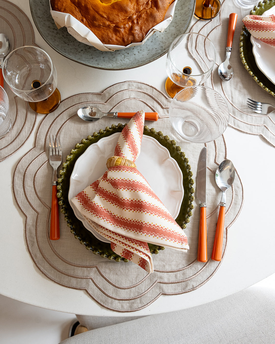 Guardanapo quadrado em 100% algodão estampado, com bainha simples.