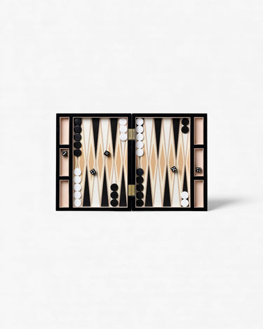 Descubra o conjunto de gamão lacado com um padrão eclético impressionante em preto, branco e creme. Esta edição arrojada combina uma jogabilidade intemporal com um design expressivo, apresentando um tabuleiro grande em madeira e peças acrílicas brilhantes. Tanto um jogo como uma peça de destaque, acrescenta personalidade quer seja jogado ou exposto.