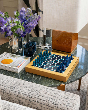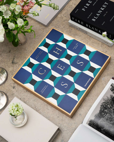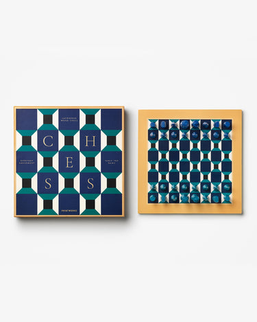 Jogo de Xadrez Classic, Com Padrão Elegante em Azul, Preto e Branco