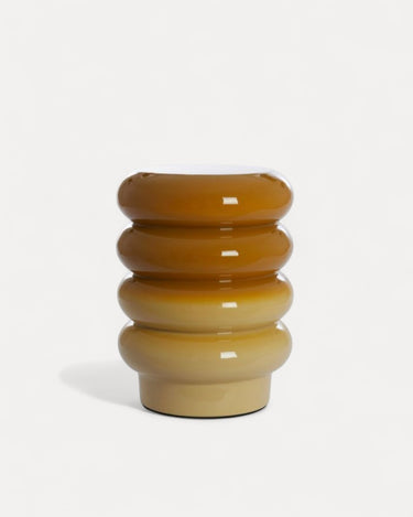 A mesa lateral Orbit distingue-se pelo design escultórico de formas arredondadas em camadas empilhadas, criando um efeito visual dinâmico e contemporâneo. O acabamento lacado em alto brilho realça a cor e confere à peça um aspeto sofisticado e luminoso. Compacta e versátil, pode ser usada como mesa de apoio, elemento decorativo ou destaque em qualquer divisão.