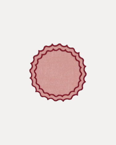 Base de copo em mistura de linho e algodão, com recorte circular e dupla borda ondulada. Um detalhe funcional e elegante para proteger superfícies, acrescentando um toque de cor e textura à mesa.
